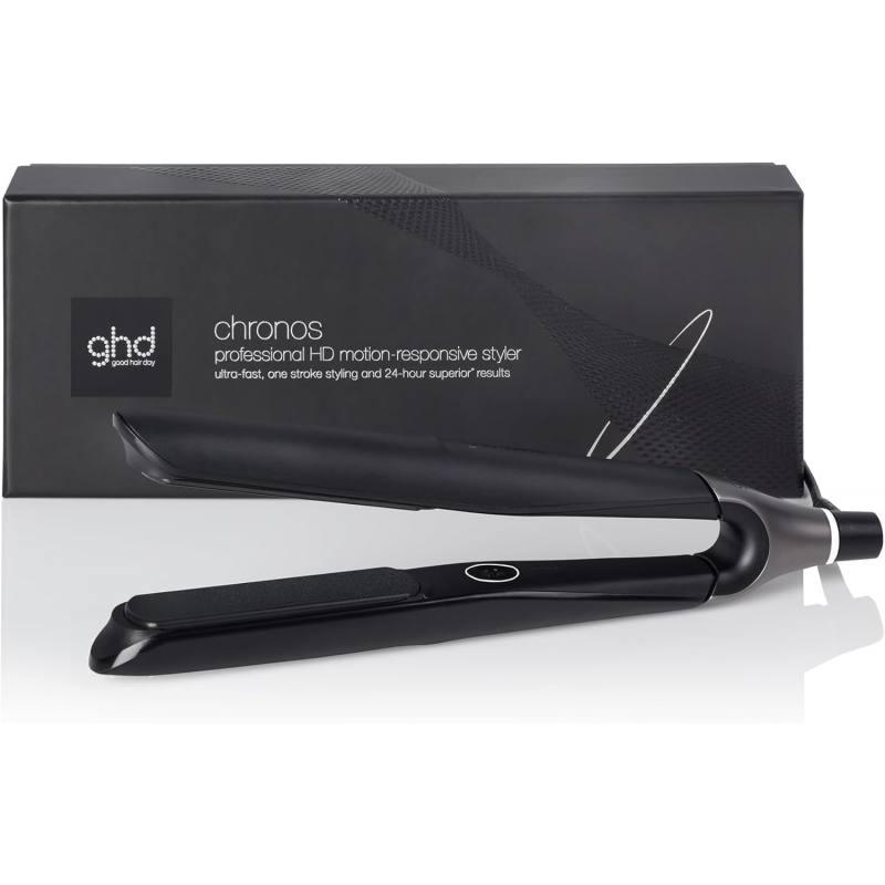 La nuova styler professionale ghd chronos con HD motion-responsiv: 2X volte più reattiva che si adatta a qualsiasi tipo di capello monitorando il calore e ottimizzando la temperatura a 185°C.